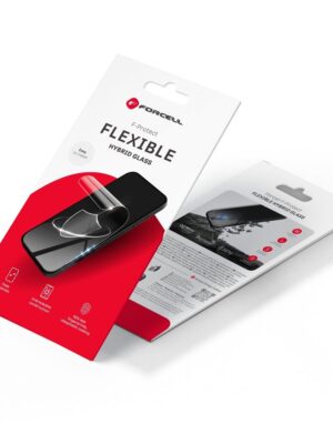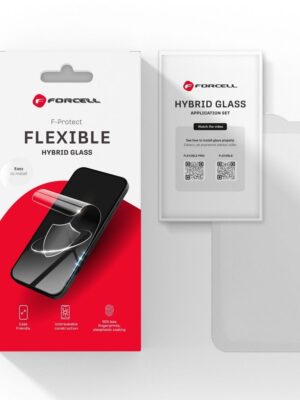 Modernes, bruchsicheres Hybridglas Forcell Flexible, das den gesamten Smartphone-Bildschirm einschließlich der Ränder abdeckt. Es verfügt über eine antibakterielle Biomaster-Beschichtung, die Mikroorganismen effektiv entfernt. Die flexible Konstruktion erleichtert die Montage des Glases erheblich.