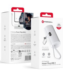FORCELL F-ENERGY Power Plug F5K3 Powerbank 5.000mAh mit integriertem Anschluss für Lightning 8-PIN PD 20W weiß