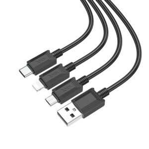 3in1 Hoco X74 Ladekabel mit USB-A – Lightning / Micro USB / USB-C Anschlüssen.