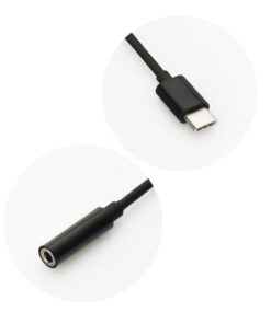 A small HF/Audio adapter that connects a USB type C connector with a 3.5mm jack plug. Allows you to connect your device to a USB Type-C input with any audio device equipped with a standard Jack tip, which has e.g. most of the headphones.