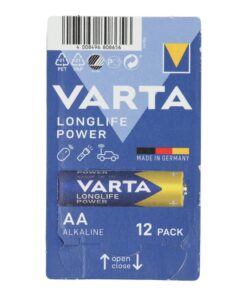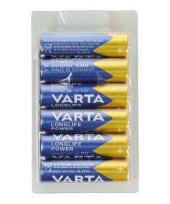 Longlife Varta batteries with increased capacity and efficiency compared to standard alkaline batteries. Batteries have a long service life. They prove themselves especially in devices with constant and low energy demand, such as remote controls, wall clocks or radios. Longlife Varta batteries are distinguished by a long operating time and reliable energy supply. „Single Press Out“ ensures easy opening of the package and convenient storage of unused batteries VARTA is one of the world’s leading battery manufacturers. Technical specification : VARTA TYPE: 4106 IEC marking: LR6 Cell size: AA Diameter: 14.5 mm Height: 50.5 mm Weight: 23.2 g Electrochemical System: Alkaline Manganese Battery (ZN / MNO2) Voltage: 1.5V