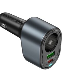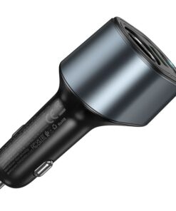 Hoco Z56 Auto-Ladegerät mit Schnellladefunktion und dualem Ausgang. Ermöglicht das schnelle Aufladen mobiler Geräte im Fahrzeug. Ausgestattet mit USB-C, USB-A sowie einem Zigarettenanzünderanschluss.