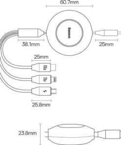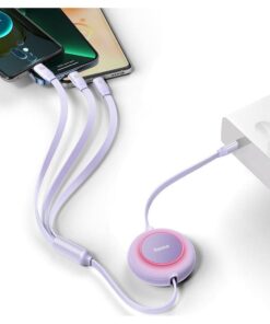 Das USB-C Kabel mit USB-C-, Lightning- und Micro-USB-Anschlüssen ist mit einer Lade- und Datenübertragungsrate von 480 Mb/s ausgestattet und garantiert einen schnellen sowie sicheren Austausch von Energie und Informationen. Es besitzt einen integrierten Organizer, der das mühelose Einstellen der Kabellänge ermöglicht, was insbesondere für Nutzer mit unterschiedlichen Anforderungen sehr praktisch ist. Dicke Kupferleitungen im Inneren sorgen für sicheres Laden bis zu PD 100 W über USB-C.