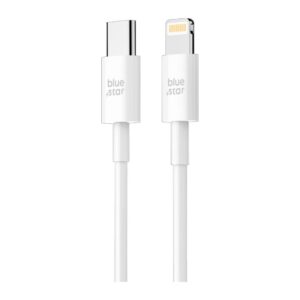 Blue Star Kabel mit USB-C- und Lightning-Anschlüssen zum Laden mit 12 W Leistung und zur Datenübertragung. Hergestellt aus hochwertigen Komponenten ist es robust und widerstandsfähig gegen Beschädigungen, was eine lange Nutzungsdauer gewährleistet. Die Unterstützung des Quick Charge 3.0 Standards verkürzt die Ladezeit deutlich.
