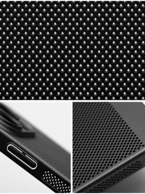 Die Breezy Hülle vereint Schutz, Funktionalität und stylisches Design. Sie ist so gestaltet, dass eine optimale Luftzirkulation gewährleistet wird, wodurch die Gefahr von Überhitzung des Telefons reduziert wird. Dank des perforierten Musters und des hochwertigen Kunststoffs schützt die Hülle das Telefon, ohne es zu verdicken, und bewahrt seine schlanke Form. Sie besteht aus einem einzigen Guss, der eine perfekte Passform und Schutz für die Kamerainsel garantiert.