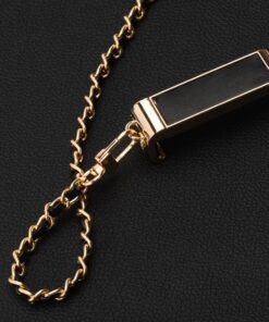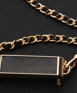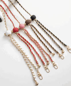 Hergestellt aus Metallkette und geflochtenem PU-Leder ist das Produkt eine moderne Ergänzung für jedes Handy. Goldene Beschläge und ein dekorativer Verstellknopf verleihen ihm einen eleganten Charakter. Die Länge des Bands kann den Bedürfnissen des Nutzers angepasst werden – es kann über der Schulter oder um den Hals getragen werden.