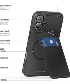 Die Dux Ducis Rafi II Mag Hülle ist eine fortschrittliche Lösung für Smartphones, kompatibel mit MagSafe. Sie verfügt über zwei Kartenfächer, einen RFID-Schutz und einen verstellbaren Ständer.