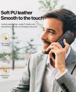 Hergestellt aus hartem PC-Material und weichen TPU-Kanten, ist die Hülle einfach anzubringen und schützt das Telefon zuverlässig vor Stürzen. Die Rückseite besteht aus glattem PU-Leder, das für Eleganz und angenehmes Halten sorgt.