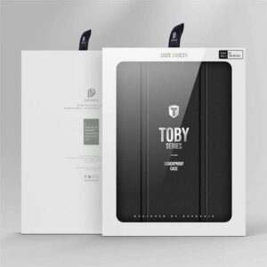 Dux Ducis Toby Hülle – leicht, langlebig und elegant. Schützt das Tablet effektiv vor mechanischen Schäden. Hergestellt aus hochwertigen Materialien, verfügt die Hülle über eine Standfunktion, die das Arbeiten mit dem Tablet noch angenehmer macht. Zusätzlich ist die Hülle mit einer Auto-Wake Funktion, einem magnetischen Verschluss und einem Fach für den Stylus ausgestattet.
