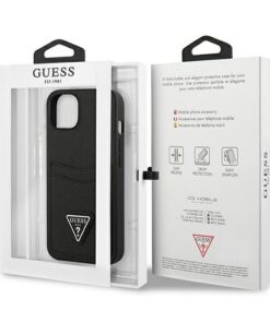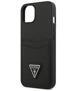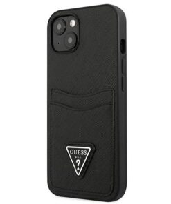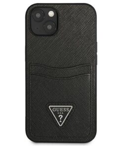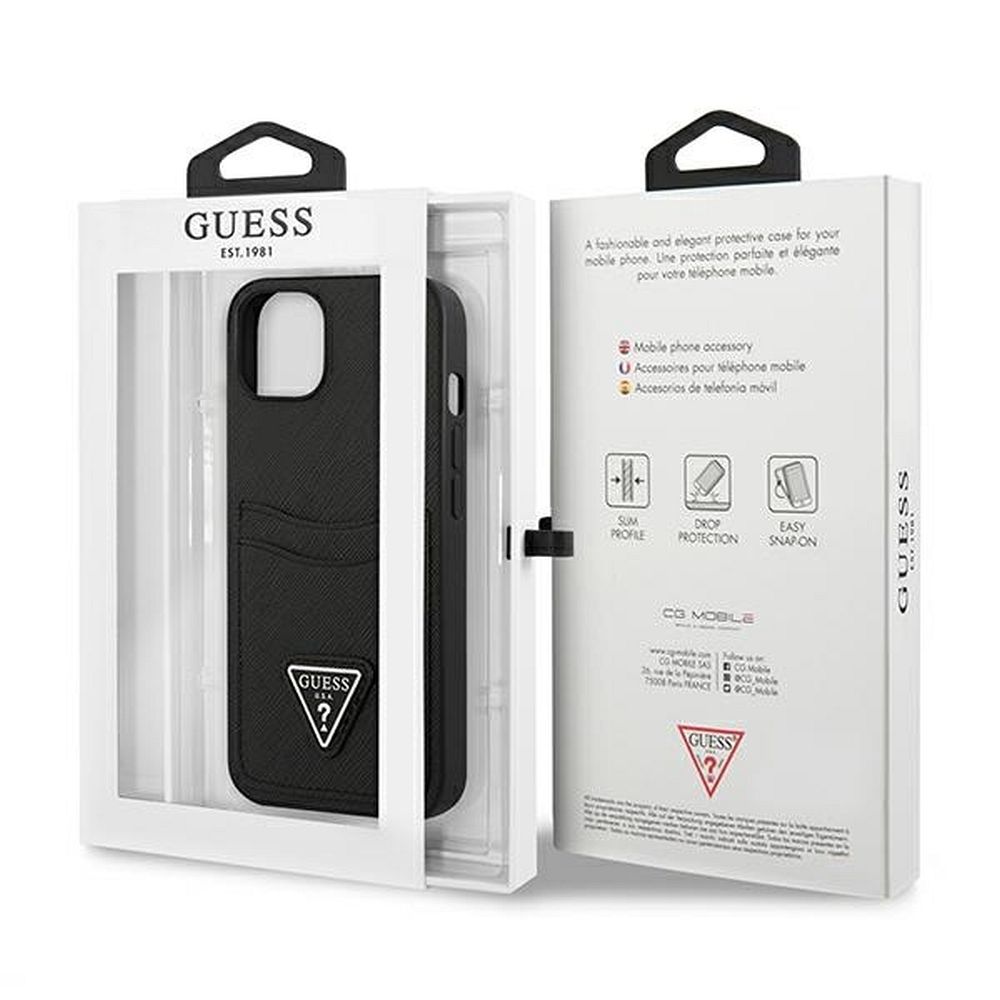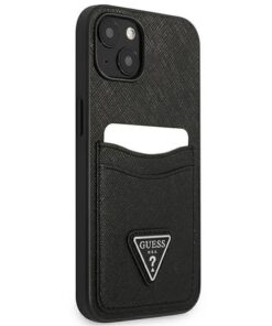 Echtes GUESS Case GUHCP13SPSATPK für iPhone 13 MINI (Saffiano Double Card Triangle / schwarz)
