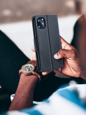 Das stylische Buchcover kombiniert Geldbörse und Schutz für Ihr Telefon in einem. Die Hülle verfügt über ein Fach für Bankkarten und wichtige Dokumente und lässt sich zu einem TV-Ständer umklappen, was das Ansehen von Filmen besonders bequem macht.