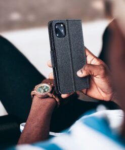 Das Fancy Book Cover vereint Geldbörse und Schutz für Ihr Telefon in einem. Die Hülle verfügt über ein Fach für Bankkarten und wichtige Dokumente und lässt sich zu einem TV-Ständer umklappen, sodass Sie bequem Filme ansehen können.