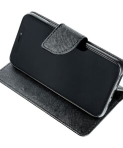 Die Fancy Book Hülle vereint Brieftasche und Schutz für Ihr Handy in einem. Die Hülle verfügt über ein Fach für Bankkarten und wichtige Dokumente und lässt sich zu einem TV-Ständer umklappen, was das Ansehen von Filmen erleichtert.