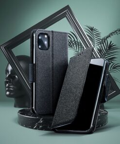 Das Fancy Book Cover ist eine Kombination aus Brieftasche und Handyhülle in einem. Es verfügt über eine Tasche für Bankkarten und wichtige Dokumente und lässt sich zu einem TV-Ständer umklappen, was das Anschauen von Filmen erleichtert.
