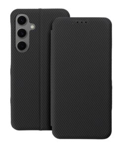 Die Folio Side Magnet Hülle verfügt über einen innovativen seitlichen Magnetverschluss. Sie ist vollständig kompatibel mit dem S-Pen der Samsung Galaxy ULTRA Geräte und ermöglicht die uneingeschränkte Nutzung des Stylus. Zudem ist die Oberfläche mit einem eleganten Carbon-Muster verziert, das dem Zubehör einen modernen und stilvollen Look verleiht.