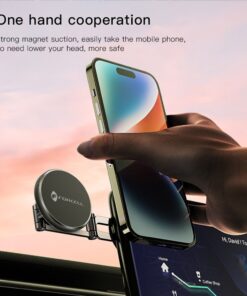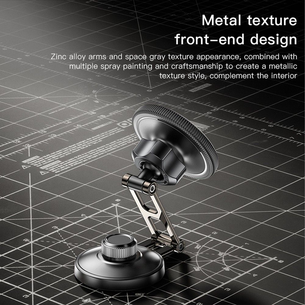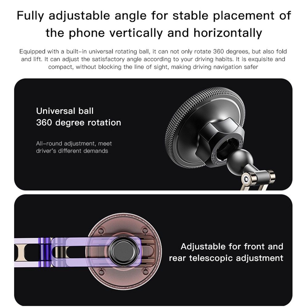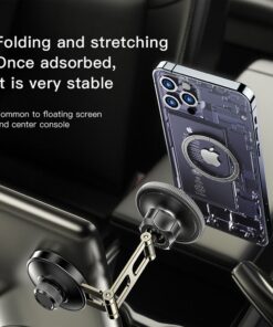 Hergestellt aus robustem Material, verfügt der magnetische Autohalter über eine klappbare Metallkonstruktion und ist frei verstellbar. Er kann an der Windschutzscheibe, dem Armaturenbrett oder anderen flachen Oberflächen montiert werden. Der Halter ist kompatibel mit MagSafe-Technologie.
