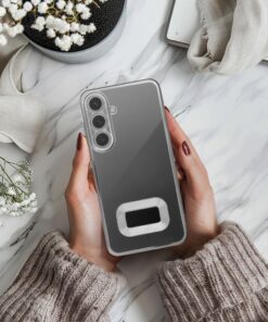 Glam Case ist ein trendiges Accessoire und garantiert Sicherheit. Es handelt sich um eine einzigartige Hülle mit dekorativen Kanten und einem originellen Rahmen auf der Rückseite. Die Hülle schützt nicht nur das Display, sondern auch die Kamera mit ihren Linsen – sie verfügt über eine Abdeckung für die Kamerainsel und zusätzlichen Schutz für die Linsen.