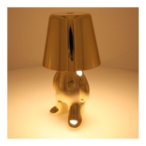 Die goldfarbene Lampe ist in verschiedenen Varianten erhältlich, sodass Sie ihr Aussehen individuell an Ihre Vorlieben und Raumanforderungen anpassen können. Sie können zwischen stehenden, sitzenden Figuren in unterschiedlichen Posen und kletternden Figuren wählen, was die Gestaltung einzigartiger Arrangements ermöglicht. Die praktische Bedienung wird durch einen Touch-Schalter und die Möglichkeit des USB-Ladens zusätzlich betont, was für moderne Handhabung und Komfort sorgt.