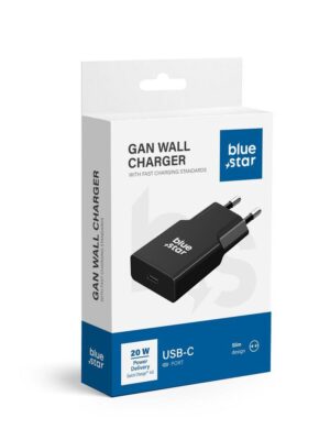 Das moderne Netzladegerät Blue Star Slim GaN wurde speziell für schnelles und sicheres Laden von Smartphones, Tablets und anderen mobilen Geräten entwickelt. Dank der fortschrittlichen GaN-Technologie ist es nicht nur besonders leistungsstark, sondern auch klein und praktisch für den täglichen Gebrauch.