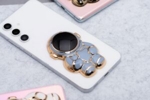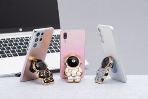 Ein kleiner Halter, der es Ihnen ermöglicht, Ihr Smartphone bequem in der Hand zu halten und gleichzeitig als praktischer Ständer dient.