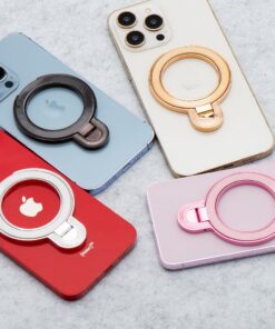 Er haftet direkt mit starkem Klebstoff an der Hülle oder dem Cover, erleichtert das sichere Halten des Telefons und verhindert versehentliches Fallenlassen. Der drehbare Ring ist kippbar und verwandelt den Halter in einen praktischen Ständer – ideal zum Filmeschauen oder für Videoanrufe. Dank seines flachen Designs beeinträchtigt der Ring die Nutzung von magnetischen Halterungen nicht.