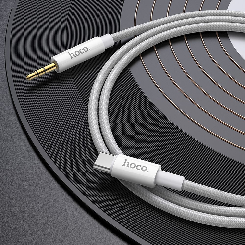 Modernes HOCO UPA19 Audiokabel. Die ideale Lösung zum Anschluss tragbarer Audio-Geräte wie MP3- und MP4-Player, Kopfhörer, Autoradios, tragbare Lautsprecher usw. an ein Gerät mit USB-C-Anschluss.