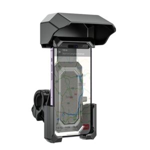 Der Halter verfügt über verstellbare Klemmen und einen integrierten Sonnenschutz, der vor ungünstigen Wetterbedingungen wie Sonne, Regen oder Schnee schützt.