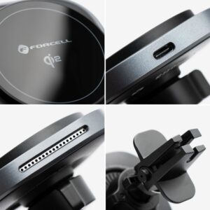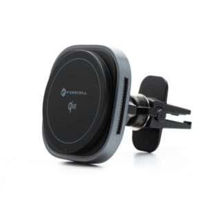 Der Forcell F-Grip AirMag ist eine moderne Autohalterung für das Lüftungsgitter mit Schnellladefunktion im neuen Qi2-Standard. Dank MagSafe-Kompatibilität, starken Magneten und einer maximalen Ladeleistung von bis zu 15 W bietet die Halterung Komfort und Sicherheit während der Fahrt.