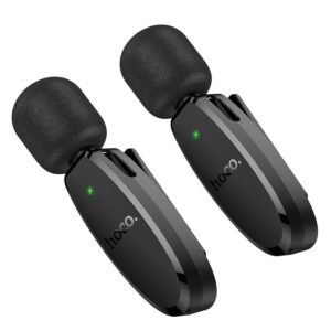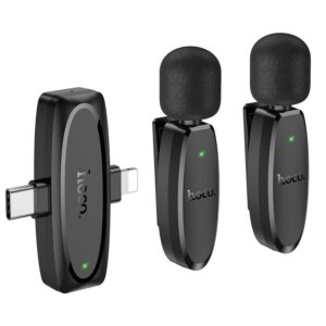 Das Hoco L15 ist ein Set aus zwei kabellosen Ansteckmikrofonen mit einem 2-in-1-Empfänger, speziell entwickelt für professionelle Audioaufnahmen an Geräten mit Type-C- und Lightning-Anschlüssen. Durch seine Vielseitigkeit und das kompakte Design ist es die ideale Wahl für Vlogger, Content-Ersteller und Journalisten.