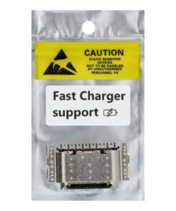 USB-Anschluss (Systembuchse) zur Reparatur von Funktionen wie Laden, Datenübertragung und Kommunikation mit kompatiblem Zubehör. Das Produkt ist für den professionellen Einsatz konzipiert und erfordert Löten bei der Montage.