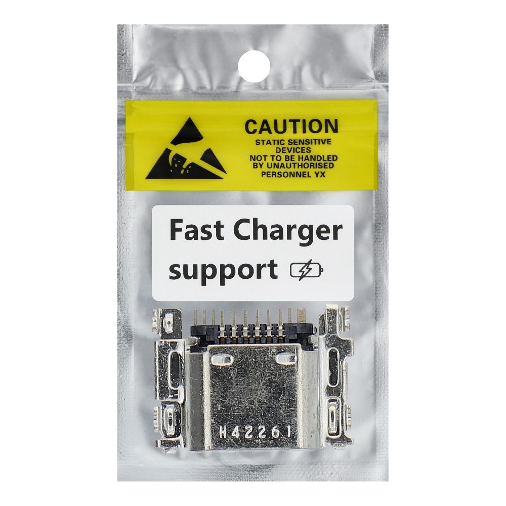 USB-Anschlussbuchse (Systemsockel) zur Reparatur von Funktionen wie Laden, Datenübertragung und Kommunikation mit kompatiblem Zubehör. Das Produkt ist für den professionellen Einsatz konzipiert und erfordert Löten bei der Montage.