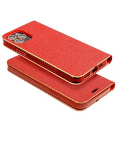 Die Hülle besteht aus einem interessanten Material mit metallisierter Struktur, das im Tageslicht schimmert. Saumkanten verstärken die Hülle und verleihen ihr ein besonders originelles Aussehen. In der Mitte befindet sich ein weiches Finish aus Imitationswildleder, das hervorragenden Schutz für empfindliche Bildschirme bietet und vor Kratzern sowie kleineren Beschädigungen schützt. Die Hülle verfügt über ein kleines, praktisches Dokumentenfach sowie eine TV-Ständerfunktion – besonders praktisch beim Ansehen von Filmen oder beim Surfen im Internet. Das Telefon wird in einem Silikongehäuse platziert, das Aussparungen für Funktionstasten hat, sodass die Nutzung uneingeschränkt möglich ist. Die Hülle ist in mehreren Farben erhältlich.