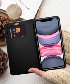 Elegante Hülle mit Metallrahmen für erhöhten Schutz des Telefons. Die ansprechende Textur und das angenehme Material verleihen der Hülle einen stilvollen Look, der das moderne Design des Geräts betont. Weiches Wildledermaterial innen und im Halter schützt das Gerät beidseitig vor Beschädigungen und Kratzern. Der Griff besteht aus elastischem Silikon und verfügt über Aussparungen. Der Aluminiumrahmen an den Kanten verstärkt die Hülle zusätzlich und bietet noch besseren Schutz für das Gerät. Die Kombination aus Metall und Originalmaterial schafft eine einzigartige und moderne Komposition, dank der das Gerät stilvoll und elegant wirkt. Die Hülle verfügt außerdem über ein kleines Fach für praktische Dokumente oder Banknoten. Die Hülle hat eine horizontale Basis zum Ansehen von Filmen oder Fotos. Ein starker Magnet sorgt für leichtes Schließen und Öffnen der Schutzhülle und verhindert ein unbeabsichtigtes Öffnen.