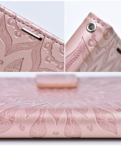 MEZZO Hülle mit einem eingeprägten Muster. Sie bietet Platz für Karten und Banknoten und verfügt über spezielle Fächer für Dokumente. Dank der angebrachten Schnur können Sie das Gerät immer nah bei sich tragen. Verschlossen wird die Hülle magnetisch.