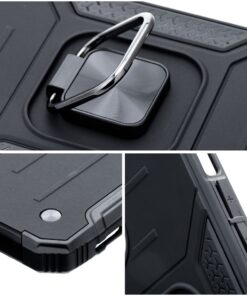 Das robuste Panzer-Design der Nitro Hülle in dunkler Ästhetik spricht besonders Liebhaber des militärischen Stils an. Der magnetische Ring auf der Rückseite der Hülle ermöglicht einen sicheren Griff, verhindert das Herausfallen aus der Hand und dient zudem als praktischer Ständer beim Medienkonsum. Der Haltering funktioniert hervorragend mit magnetischen Autohalterungen.