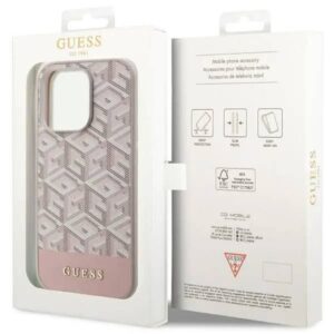Original GUESS Case GUHMP14LHGCFSEP für iPhone 14 PRO (kompatibel mit Magsafe GCUBE Stripes / Rosa)