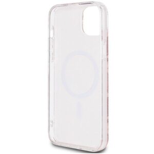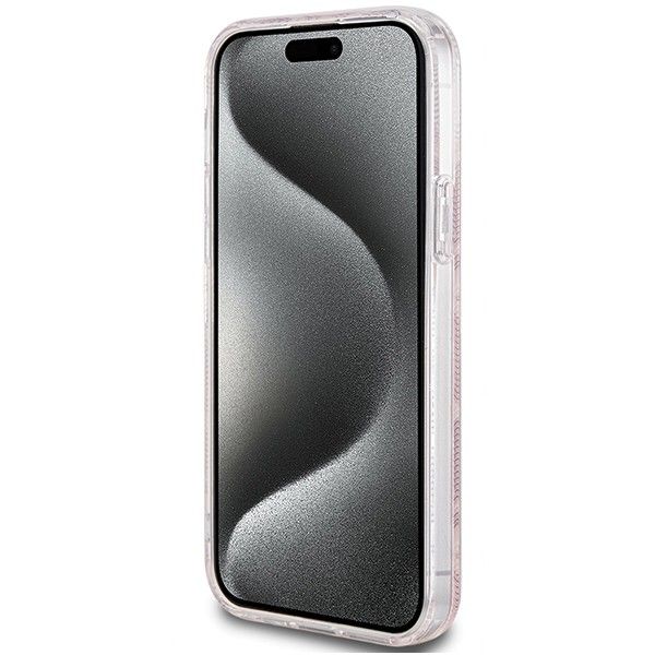Original GUESS Case GUHMP15SHGCUSTGP für iPhone 15 (kompatibel mit MagSafe / IML GCUBE / Rosa)