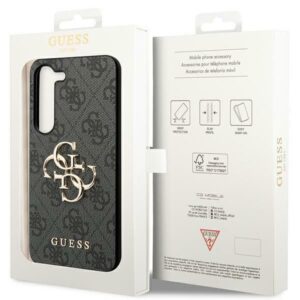 Original GUESS Hülle GUHCS24M4GMGGR für Samsung S24 Plus (Leder, 4G Metall-Logo / Schwarz)
