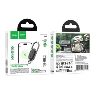 Der Hoco E91J Ortungsanhänger, kompatibel mit Apple Find My, ist ein praktischer und robuster Schlüsselanhänger mit Karabiner, den Sie an Ihren Schlüsseln, Rucksack, Tasche, Gürtelschlaufe oder Wanderzubehör befestigen können. So haben Sie Ihre wichtigsten Gegenstände stets im Blick und finden sie in der „Find My“-App schnell und einfach wieder.