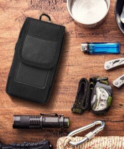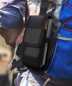 A waterproof, universal phone case that can be attached with a belt loop, clip, or snap hook. It also has a credit card pocket and a pen holder. An accessory dedicated to phones that size 16 × 8 × 3 cm.