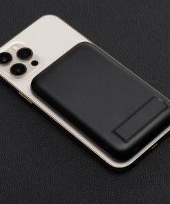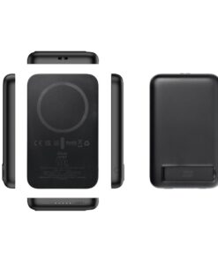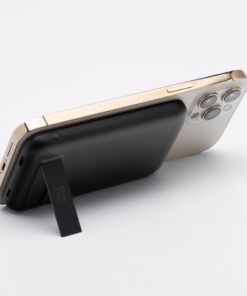 Das minimalistische, schlanke Design und das geringe Gewicht machen die Powerbank zum perfekten Begleiter auf Reisen. Vier LED-Leuchten zeigen den Ladezustand an. Die integrierte Halterung ermöglicht, die Powerbank schräg aufzustellen, um das Smartphone während des kabellosen Ladens bequem zu nutzen.