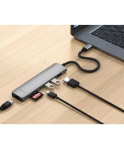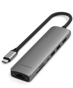 Der 7-in-1 USB-C Slim Multiport Adapter mit Ethernet bietet Gigabit Ethernet, 4K HDMI (60 Hz), 100 W USB-C PD Ladefunktion, zwei USB-A 3.2 Gen 2 Anschlüsse sowie micro-/SD-Kartenleser. Vielseitig und kompakt – ideal für den täglichen Gebrauch.