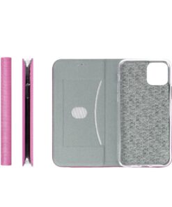The original case of metallised finish. Outside is trimmed with glittering material and in the middle is the soft material to protect your phone screen from scratches. It has a pocket for documents and magnet clasp. Available in several different colours. Case has an interesting material with metallizing structure that glistens in the daylight. Hems on the edges strengthen the case and make them even more original. In the middle is soft imitation suede finish which provides excellent protection for delicate screens and protects against scratches and minor damage. Case has a small, practical pocket for documents and the TV stand function – particularly useful when watching movies or browsing the internet. The phone is placed in a silicone housing, which has cutouts for some function buttons allowing free use of the phone. Case is available in several colours. Material: Plastic & TPU Clasp: Magnet Colour: Red