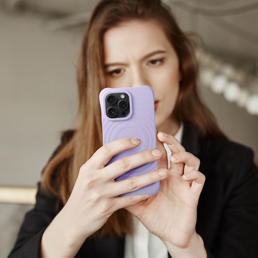 Das Silikon Zephyr Mag Cover bietet erstklassigen Schutz für Ihr Gerät und unterstützt die MagSafe-Technologie. Das einzigartige, ästhetische Design in Pastellfarben erinnert an sanfte Wellen, die sich auf der Wasseroberfläche ausbreiten, und verleiht dem Cover einen modernen Look.