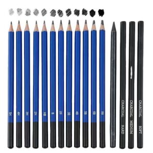 Vollständiges Set: Das Set beinhaltet verschiedene Graphitstifte, Holzkohle, Radiergummis, Anspitzer und weiteres Zubehör, mit dem Sie originelle Skizzen, Zeichnungen und Grafiken erstellen können.