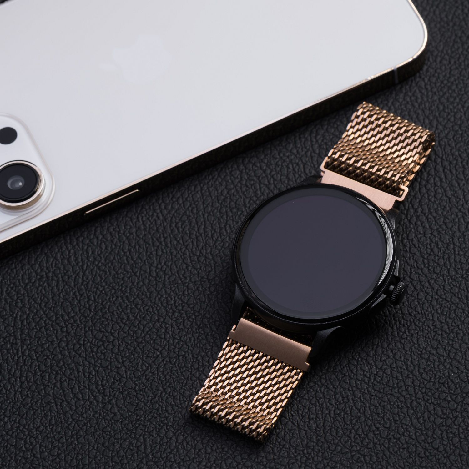 Die Smartwatch unterstützt Telefonate und Musikwiedergabe über Bluetooth 5.3. Zudem bietet sie App- und SMS-Benachrichtigungen, Sprachsteuerung, Wettervorhersage und NFC-Unterstützung. Mit einer Vielzahl stilvoller Ziffernblätter lässt sie sich individuell anpassen.