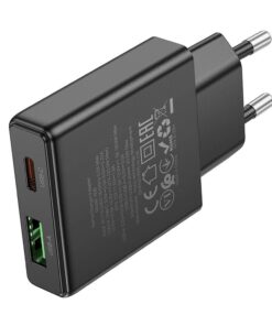 Hoco N38 Netzladegerät mit Schnellladefunktion und Doppel-Ausgang. Ermöglicht das schnelle Aufladen mobiler Geräte.
