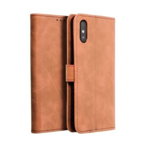 TENDER Holster. Hergestellt aus weichem, angenehm zu berührendem Material. Ausgestattet mit drei Fächern für Geldscheine und Dokumente. Verschlossen mit einem Magnetverschluss. Das TENDER Holster bietet umfassenden Schutz für Ihr Gerät, indem es nicht nur die Rückseite, sondern auch den Bildschirm schützt. Der integrierte Magnetverschluss verhindert ein unbeabsichtigtes Öffnen des Etuis und hält Ihr Telefon sicher. Drei Innenfächer, sichtbar nach dem Öffnen der Klappe, ermöglichen die sichere Aufbewahrung von Dokumenten und Geldscheinen. Die Perforation an der Falz erlaubt es, das Holster in eine TV-Ständer-Position zu falten. Dies ist ein bequemer Ständer, der das Ansehen von Filmen erleichtert. Die Installation des Etuis ist äußerst einfach: Der flexible Einsatz ermöglicht ein leichtes Einlegen Ihres Telefons. Material: Ökoleder