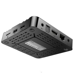 Das Gerät verfügt über vielfältige Anschlüsse wie HDMI, LAN, TF-Kartensteckplatz, 2x USB und SPDIF, was es äußerst vielseitig macht. Dank der vollständigen RTC-Funktion (Timer für Ein-/Ausschalten) können Sie automatische Ein- und Ausschaltzeiten programmieren, was den Bedienkomfort erhöht. Kompakte Maße und geringes Gewicht machen die TV-Box ideal sowohl für den Zuhause-Gebrauch als auch auf Reisen.