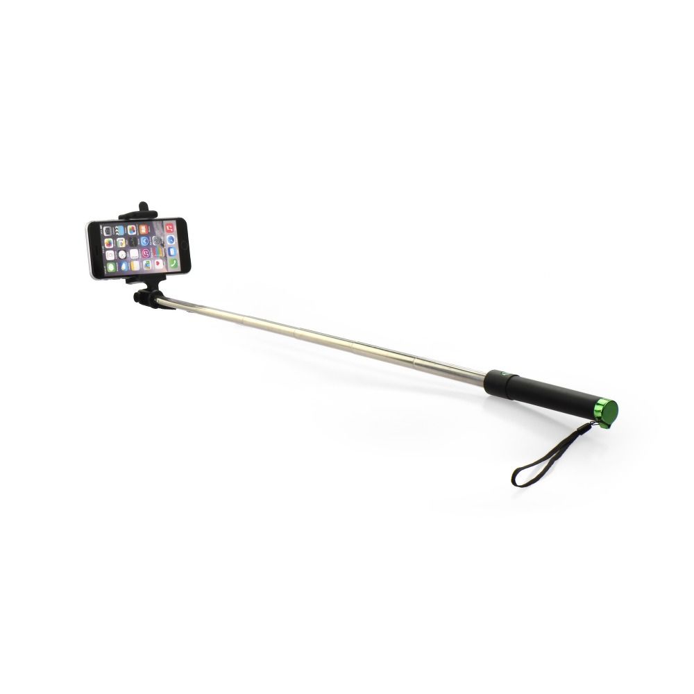 Universal selfie stick, enabling taking pictures without having to use the self-timer. The handle has an adjustable tilt angle with a value of 180 degrees, which allows you to adjust the inclination of the device to the needs of the image. Long adjustable handle offers the possibility of recognition, carried out a large picture of the image. Monopod also has additional, universal mount on the phone. Reinforced adjustable and rigid head allows you to maintain full stability position even in difficult conditions, and the rubber handle prevents the handle from falling out of hand. Built nut controls allows for proper positioning and stable mounting a camera and standard mounting thread 1/4″ on the bottom of the handle allows you to connect it to another part of the thread eg camera tripod. Colour: Green 1.Monopod: The maximum height: 97cm Minimum: 27cm Weight: 153g Bounce thread: 1/4 Maximum load: 0,5 kg